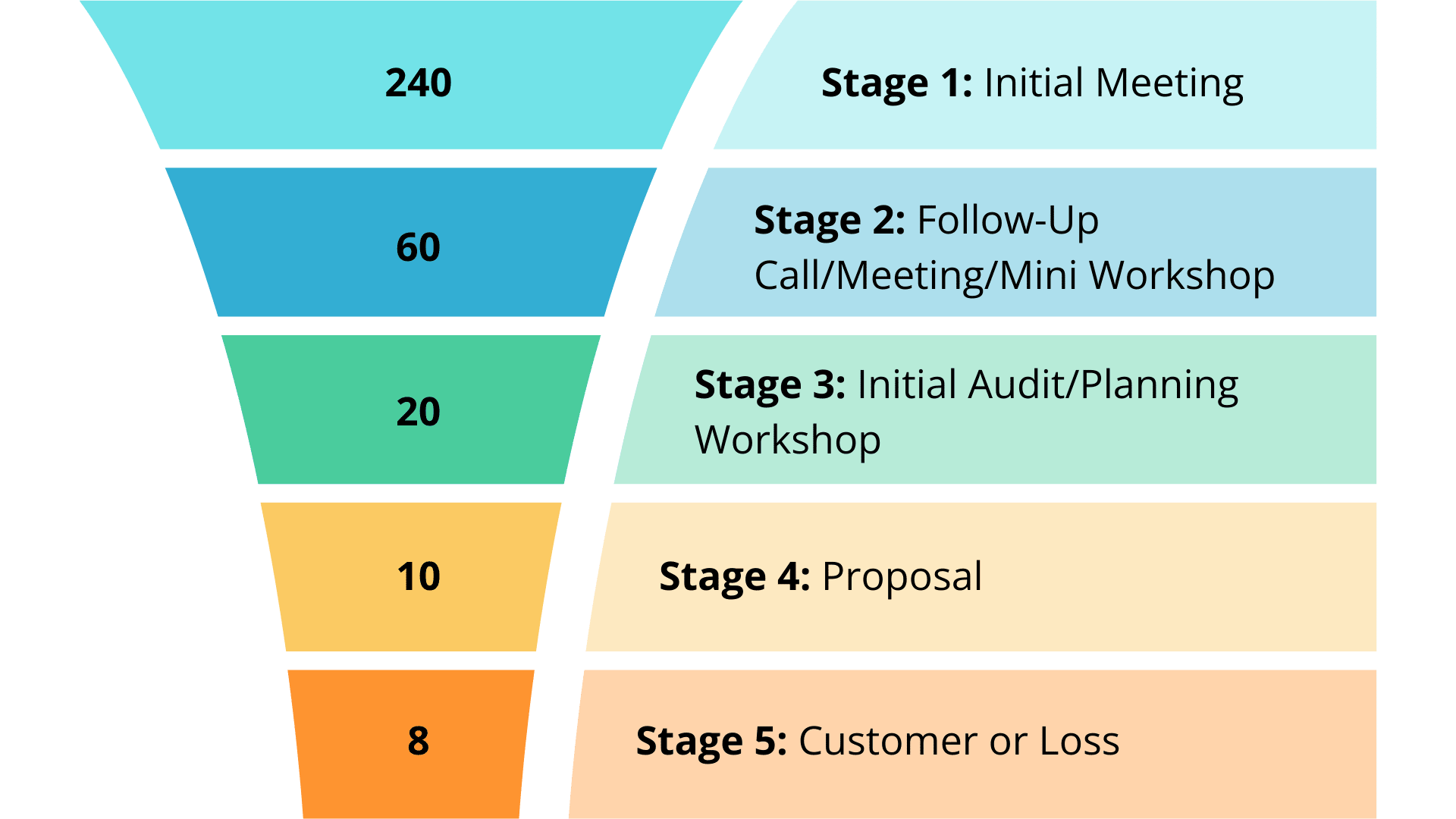 In this process, we don’t take any money from a prospect until stage 3, and so, we give quite a bit initially. We also know that if we need 6 at stage 5, we will need around 10 at the proposal stage (we are good at ensuring we don’t share proposals with people we don’t think we will work with) and then around 20 at the initial audit stage as we are again good at converting 50% of those we do audits with to get a proposal. Mainly because in this session, we outline the plan on how to get the results they want, and most of them don’t want to try and achieve this plan on their own. We don’t get everyone we engage with to an audit, and we convert around 1/3 of those we do a mini workshop with to a larger workshop, which means we know we need 60 prospects to have that initial meeting with. We also know that from our outreach, we will get maybe 1 in 4 to a meeting, and so this means we need 240 prospects in our funnel to get this amount of meetings. Here's what that looks like visually: I haven’t in the outline above taken into account referrals that we will bring in (because happy customers refer us all the time), but I would rather see these as a bonus than expect them to be part of our numbers. If we hit a higher number than £750k, I won’t be complaining 😀 💡 Quick tip – The more specific we are with the audience, the higher these % rise. Hence why we have focused on IT businesses with technical led CEO’s with a specific amount of revenue and aspirations. We are in the shoes of our target customer. So, with clarity around these numbers, the focus is on doing the campaigns (inbound and outbound) to generate initial attention and interest in what we do and offer. I have an outbound sales person who will be doing this engagement along with Nisha and myself. I always want to be on the front line and do some of this work. It keeps me sharp and shows my team how it's done as well! More to follow on this in an email in a few weeks time. These campaigns are always being tweaked, but I will be sharing the exact elements of what we will use in these campaigns within my Online training session on 5 February 2026 at 7pm. Why not come along and see how I am achieving goals for my own business and learn the tips and methods to generate new opportunities in your business? So that is how we are going to achieve our numbers. I know the revenue target is tough, but it certainly won’t be achieved without a clear plan and us taking action. So what do you think? Is this what you expected? Did you think I had some miracle way to generate new business? I don’t, and the same methods have to apply to me as to anyone else. I am just not prepared to let hope be a strategy, and I hope you aren’t either. If you want to know how to make your targets happen, register for the online training. It’s free, but I won’t be sharing a recording of it. It will be a ‘be there and get the value’ or nothing at all, and so register and put the time in place to ensure you can hit your 2026 targets. Have a brilliant week ahead and see you next Saturday. Remember, you have a choice. Eat or be Eaten. James How would you rate this edition? 🤏🏻 So-So |